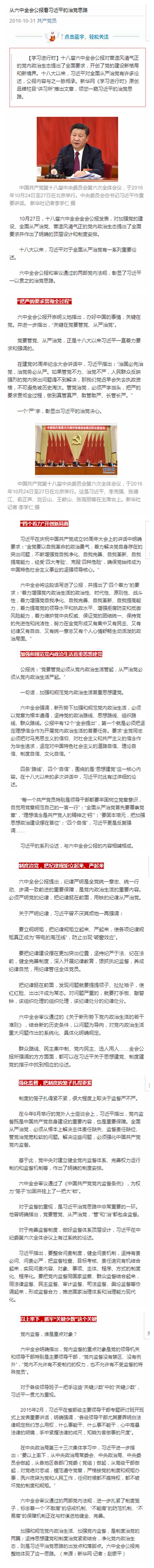 从六中全会公报看习近平的治党思路