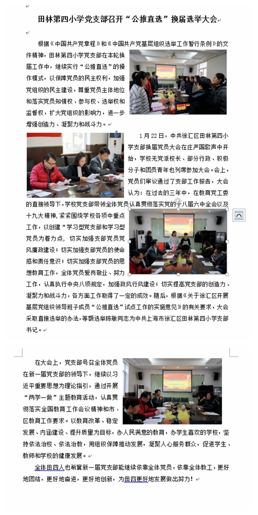 田林第四小学党支部召开“公推直选”换届选举大会