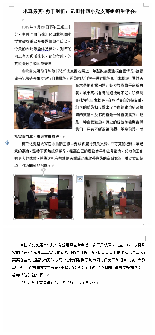 求真务实 勇于剖析:记田林四小党支部组织生活会