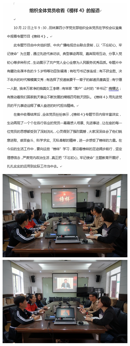 田林第四小学党支部组织党员收看李斌事迹报告会