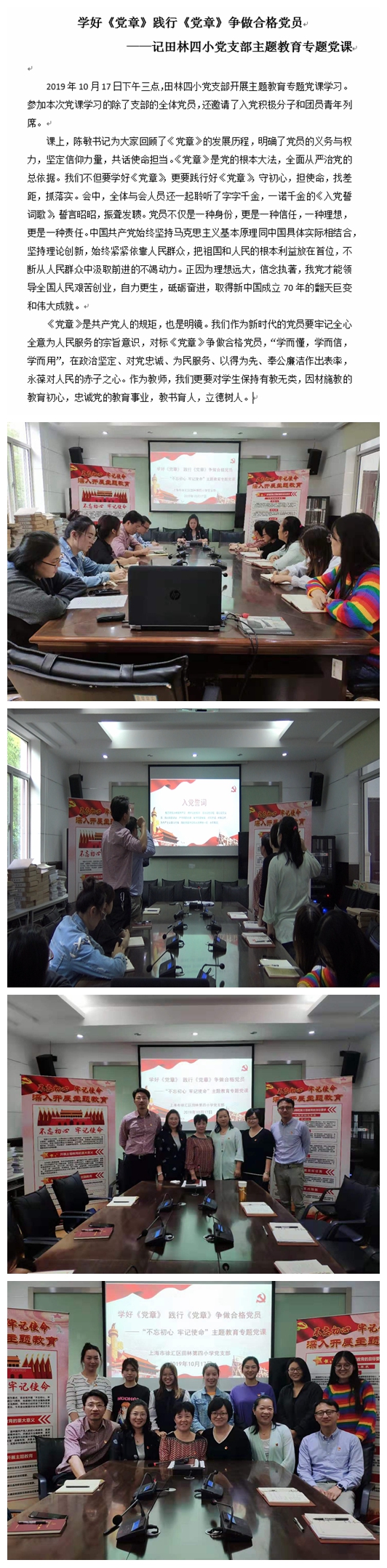 牢记初心使命 坚定理想信念-记田林四小党支部举行第二次主题党日活动
