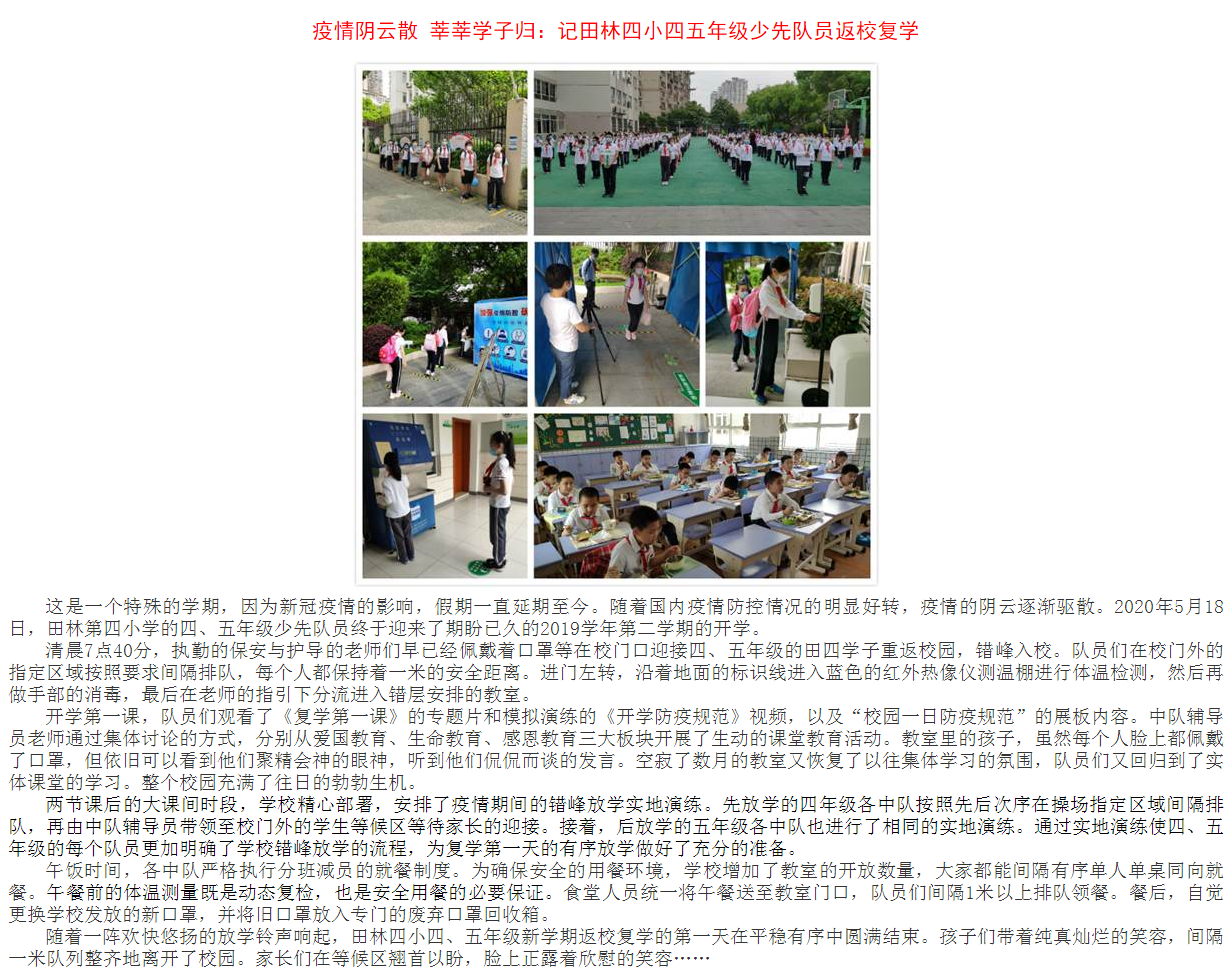 疫情阴云散 莘莘学子归:记田林四小四五年级少先队员返校复学 - 内容