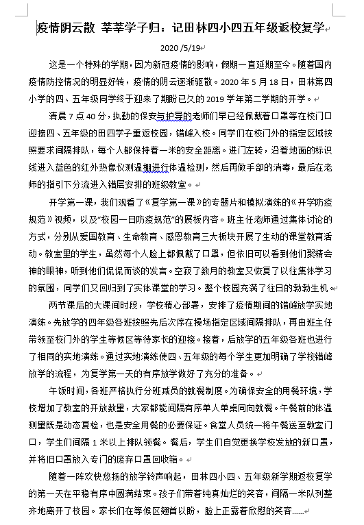 疫情阴云散 莘莘学子归:记田林四小四五年级返校复学