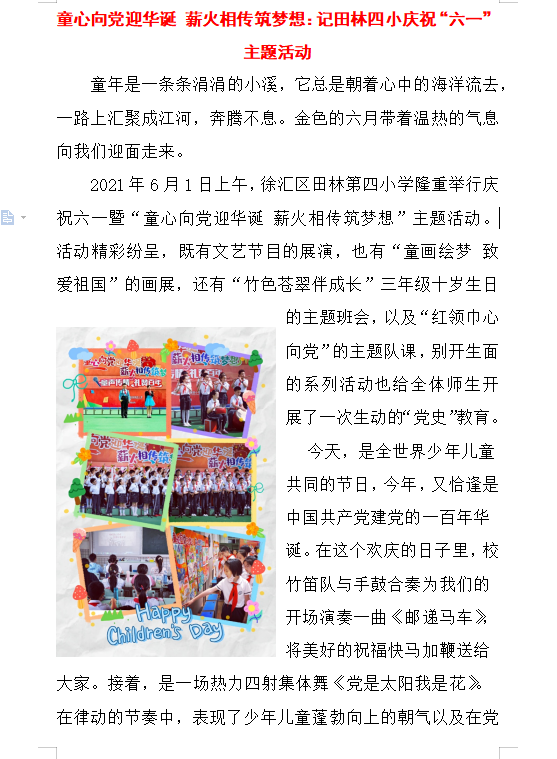 童心向党迎华诞 薪火相传筑梦想:记田林四小庆祝“六一”主题活动 - 内容