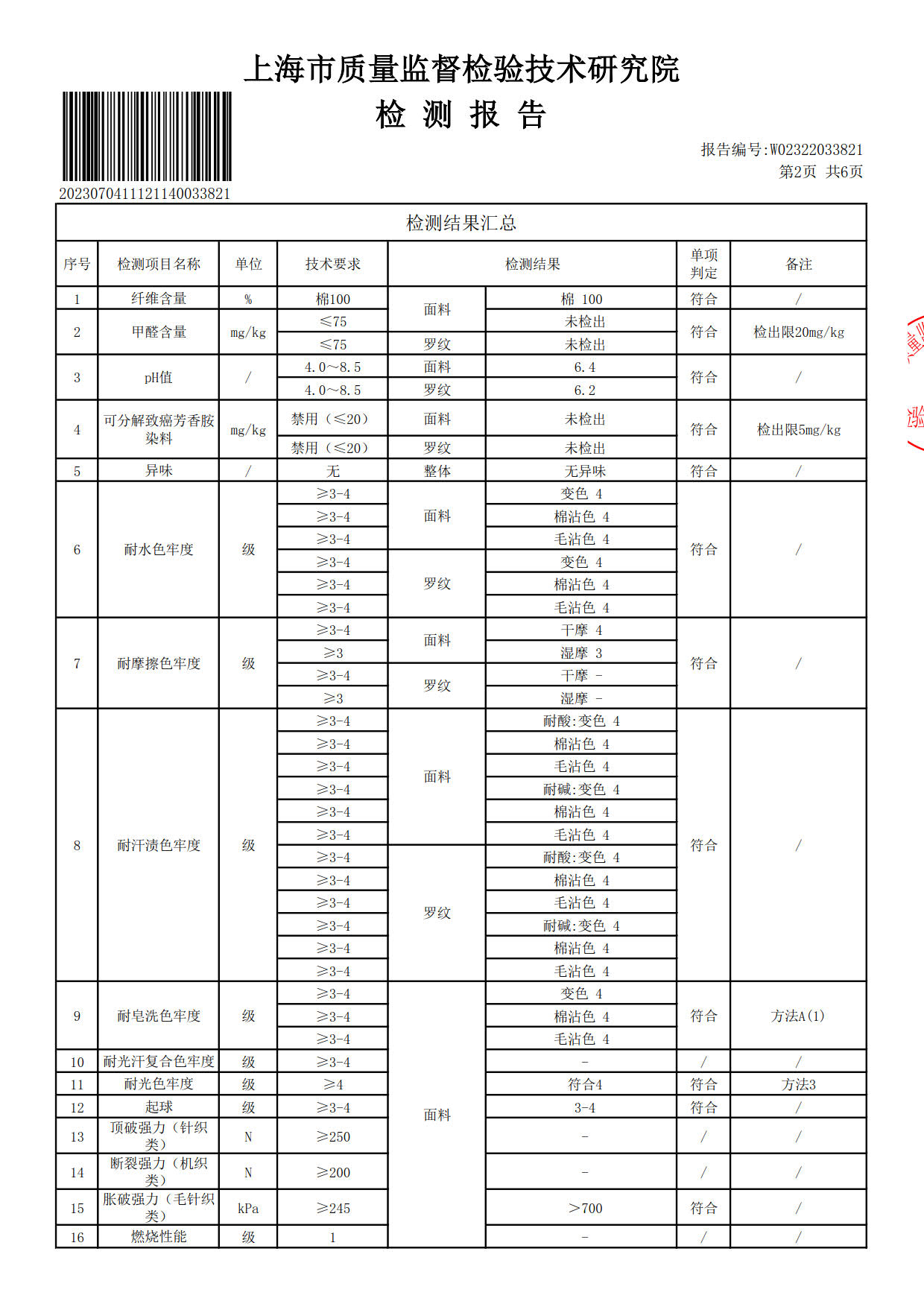 2023年9月学生校服(深花灰PK拉绒布冬裤)质检报告