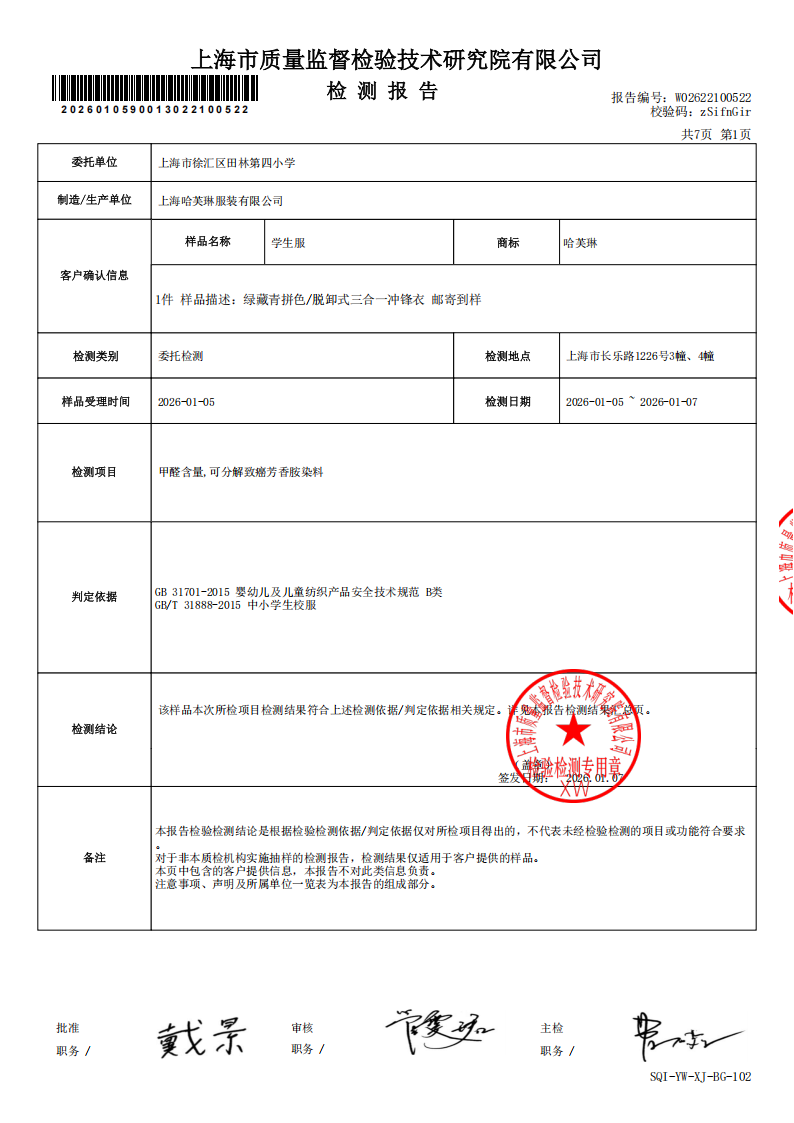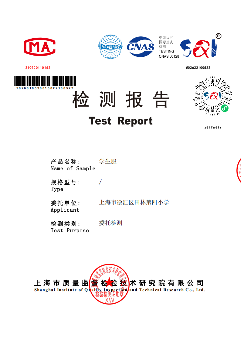 2026年1月学生校服(长袖短袖polo夏装)第二次质检报告