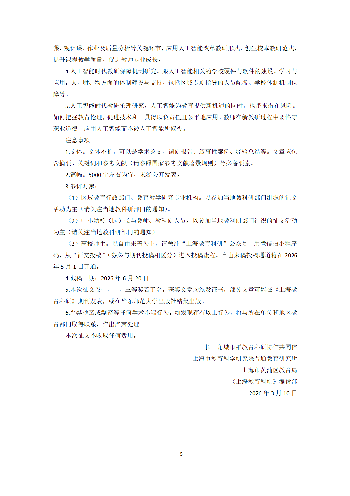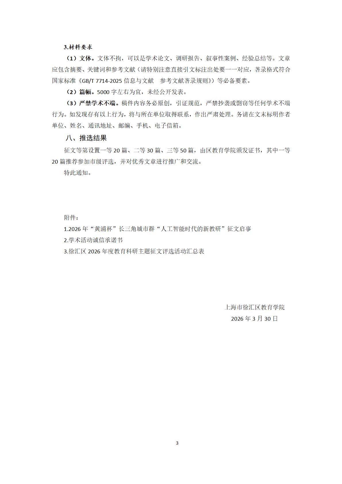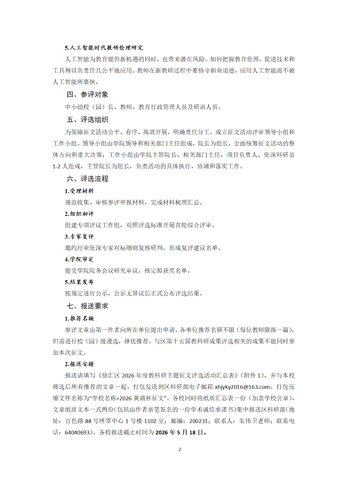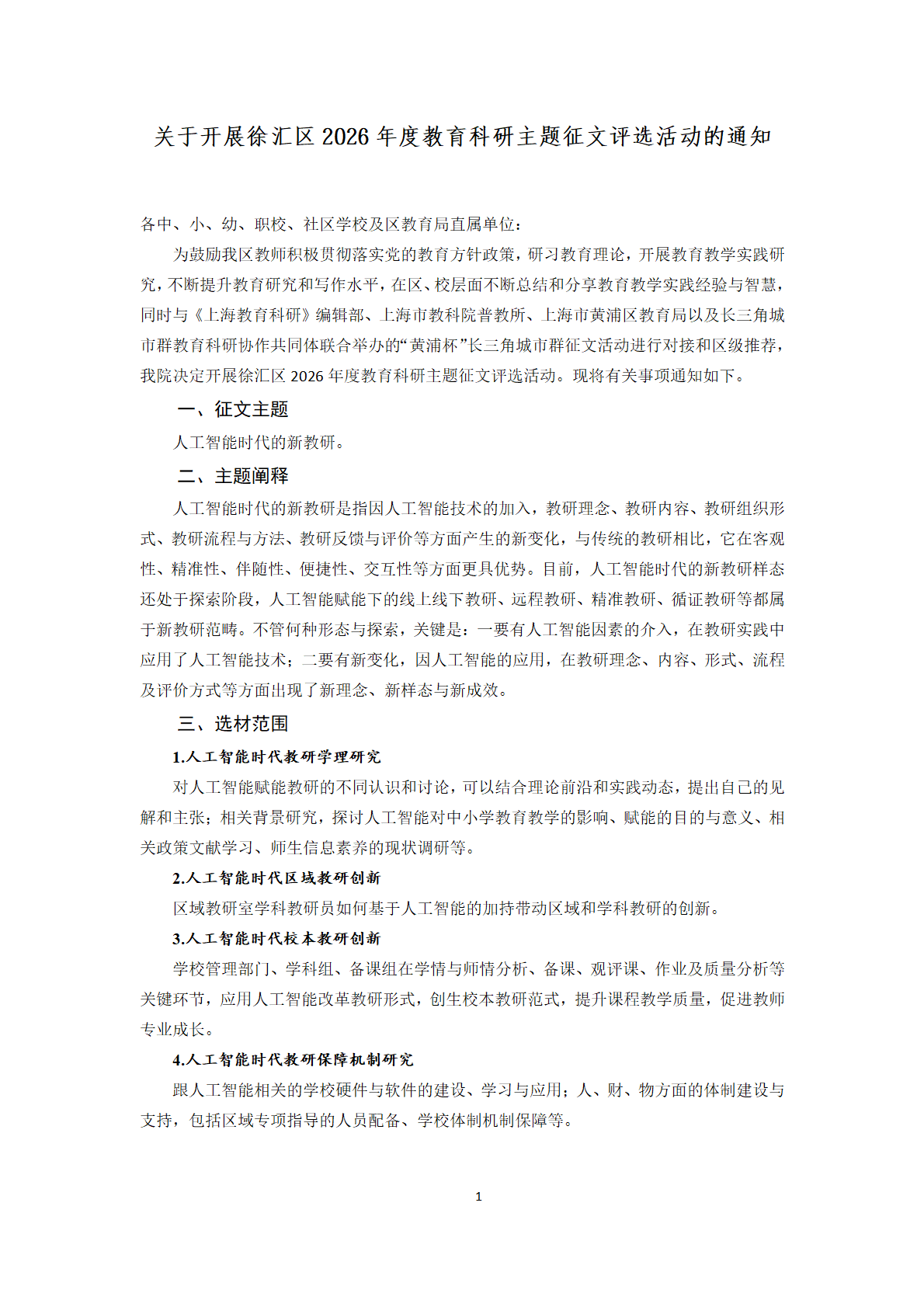 关于开展徐汇区2026年度教育科研主题征文评选活动的通知 - 内容