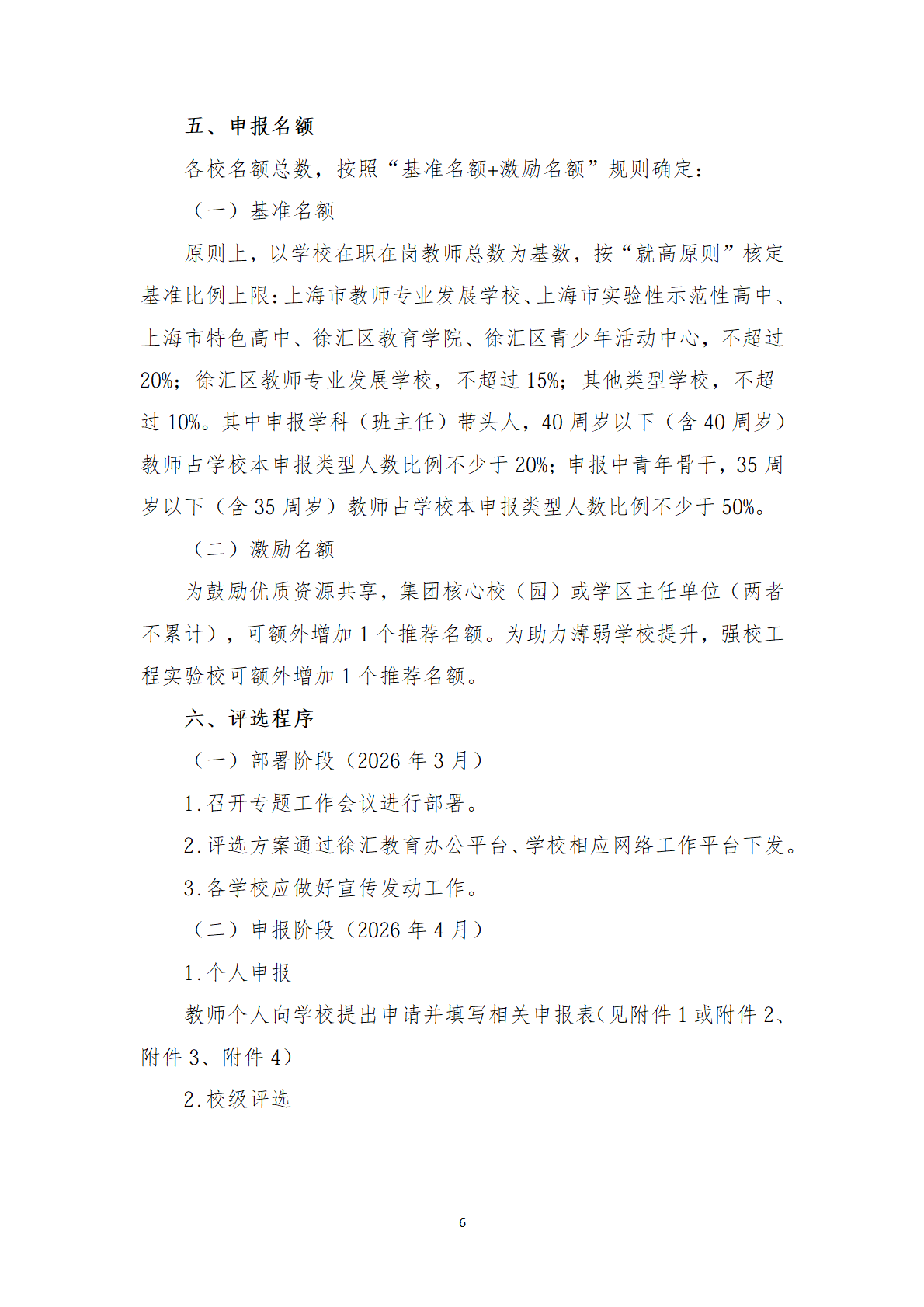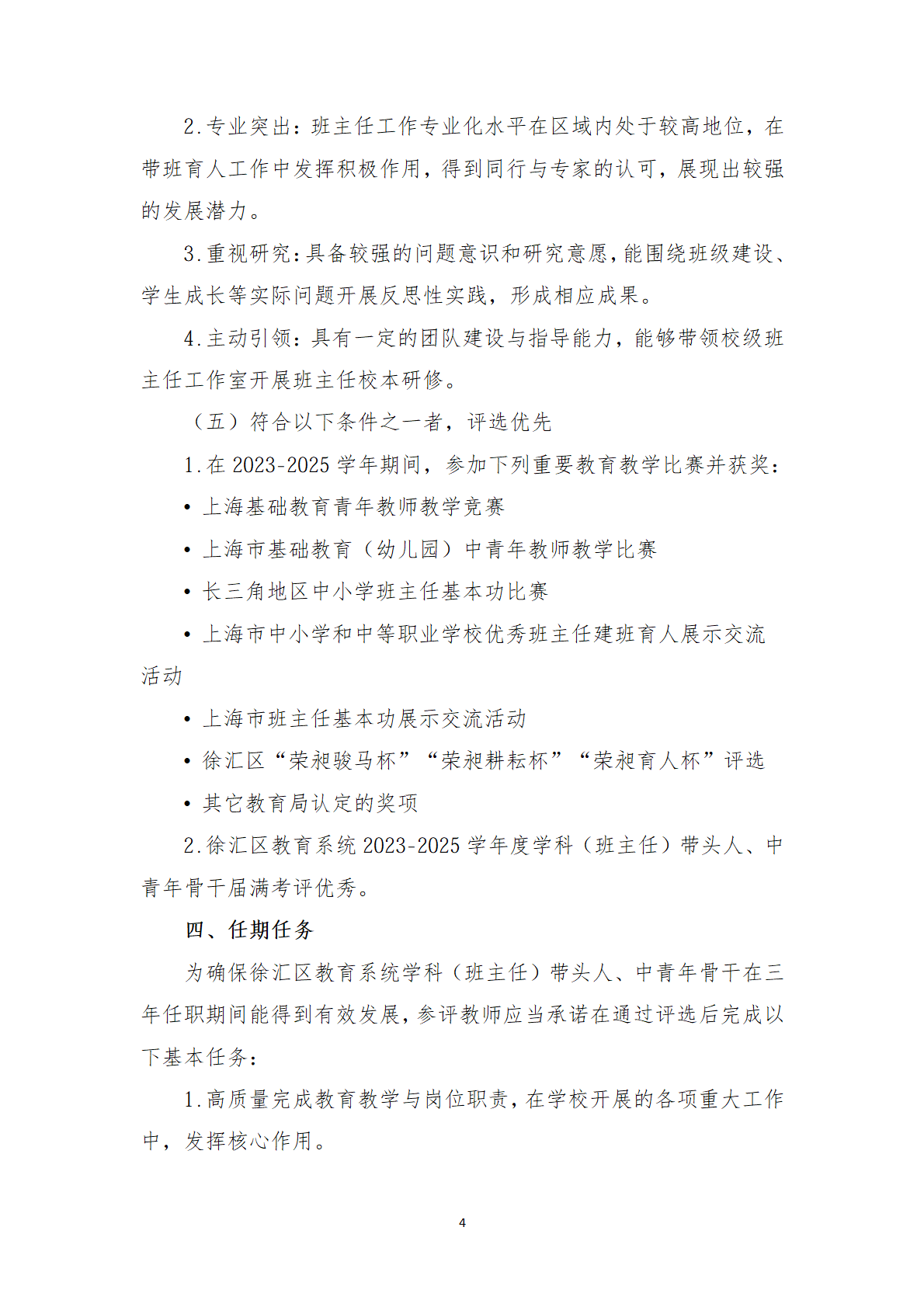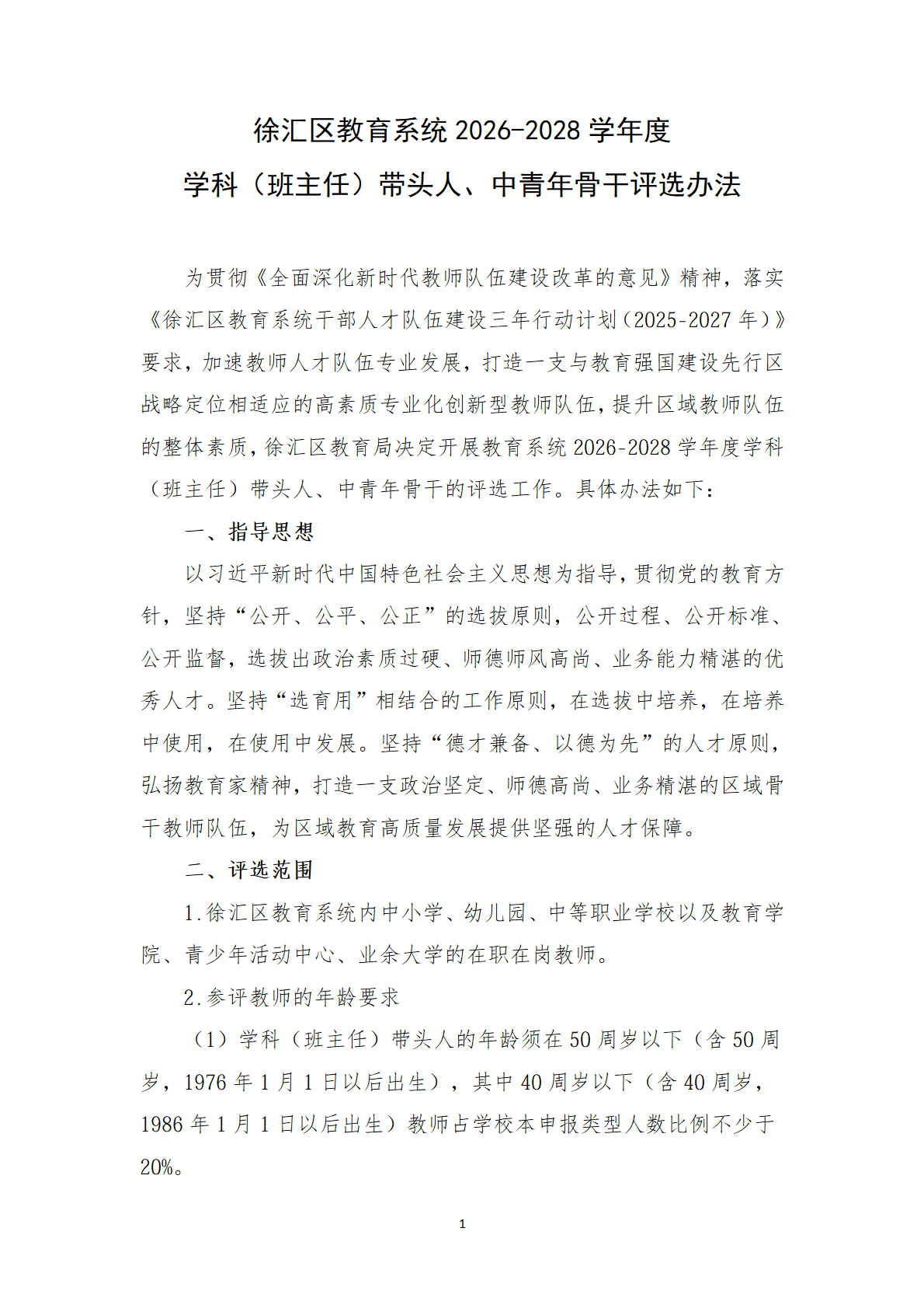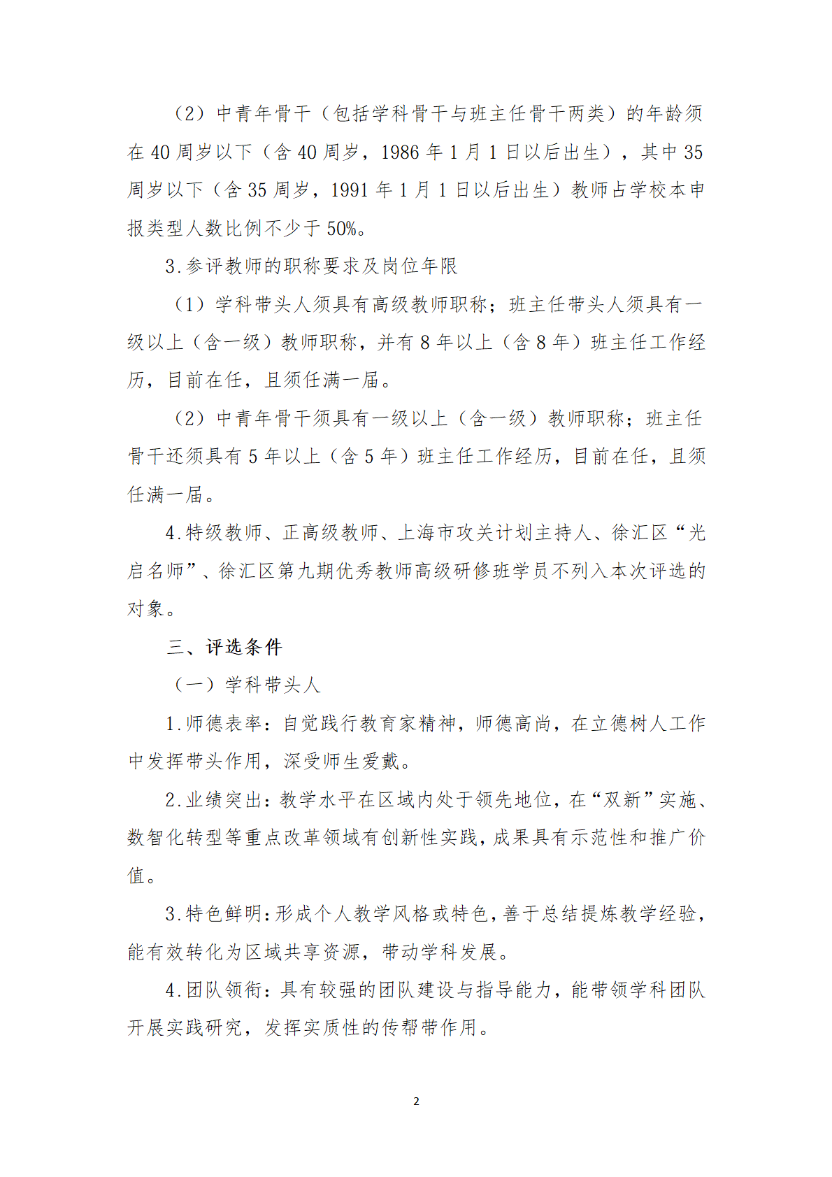 徐汇区教育系统2026-2028学年度 学科(班主任)带头人、中青年骨干评选办法 - 内容