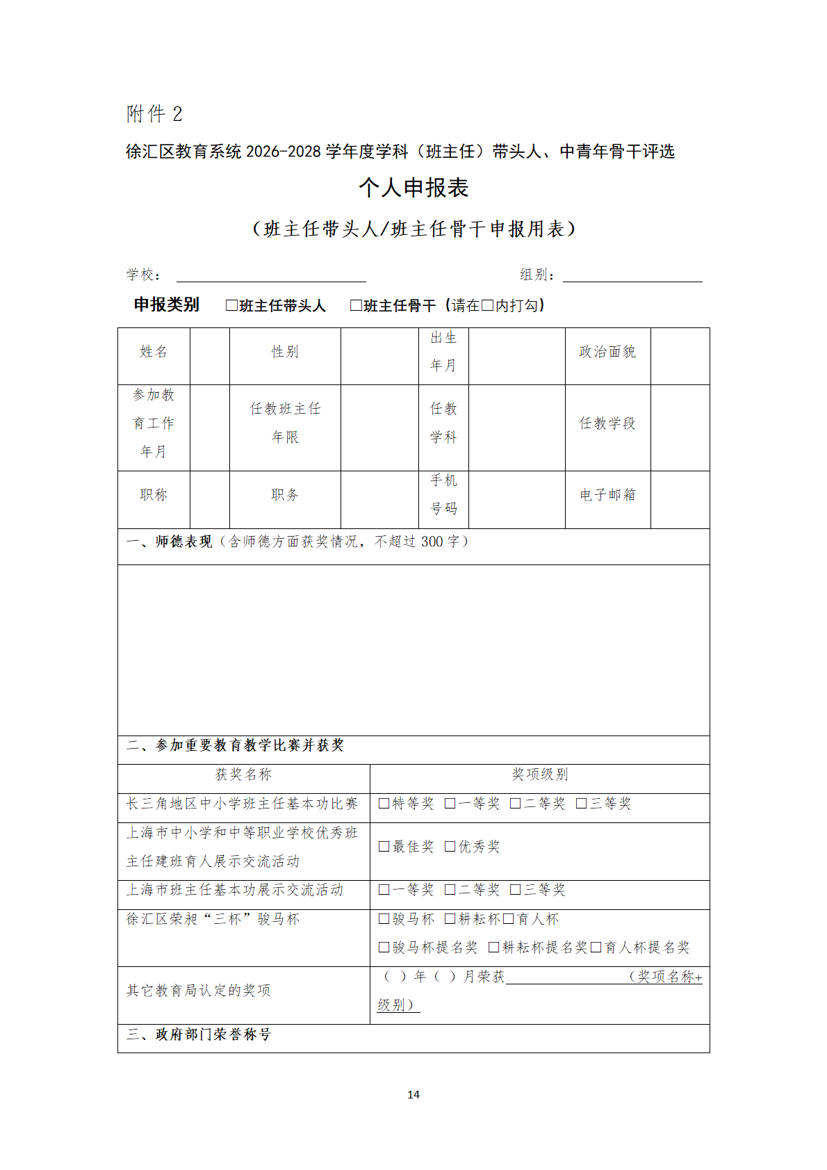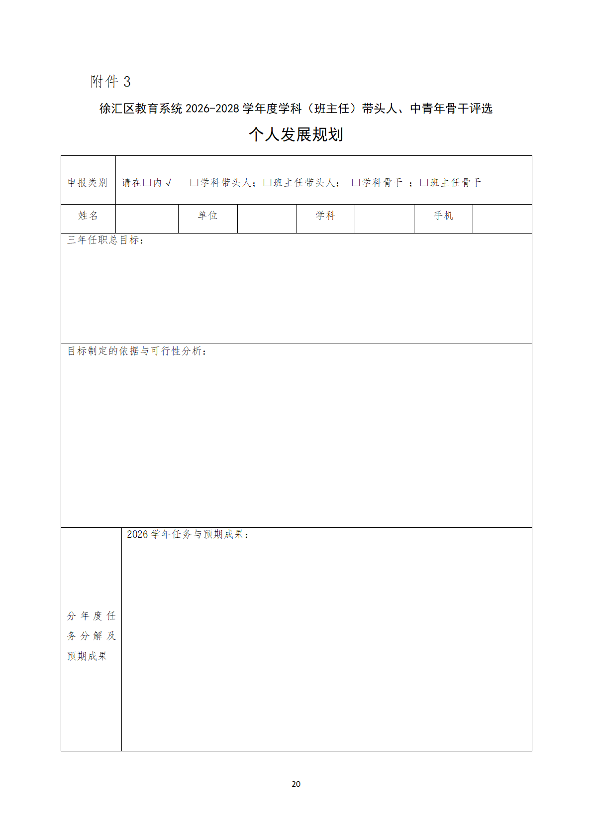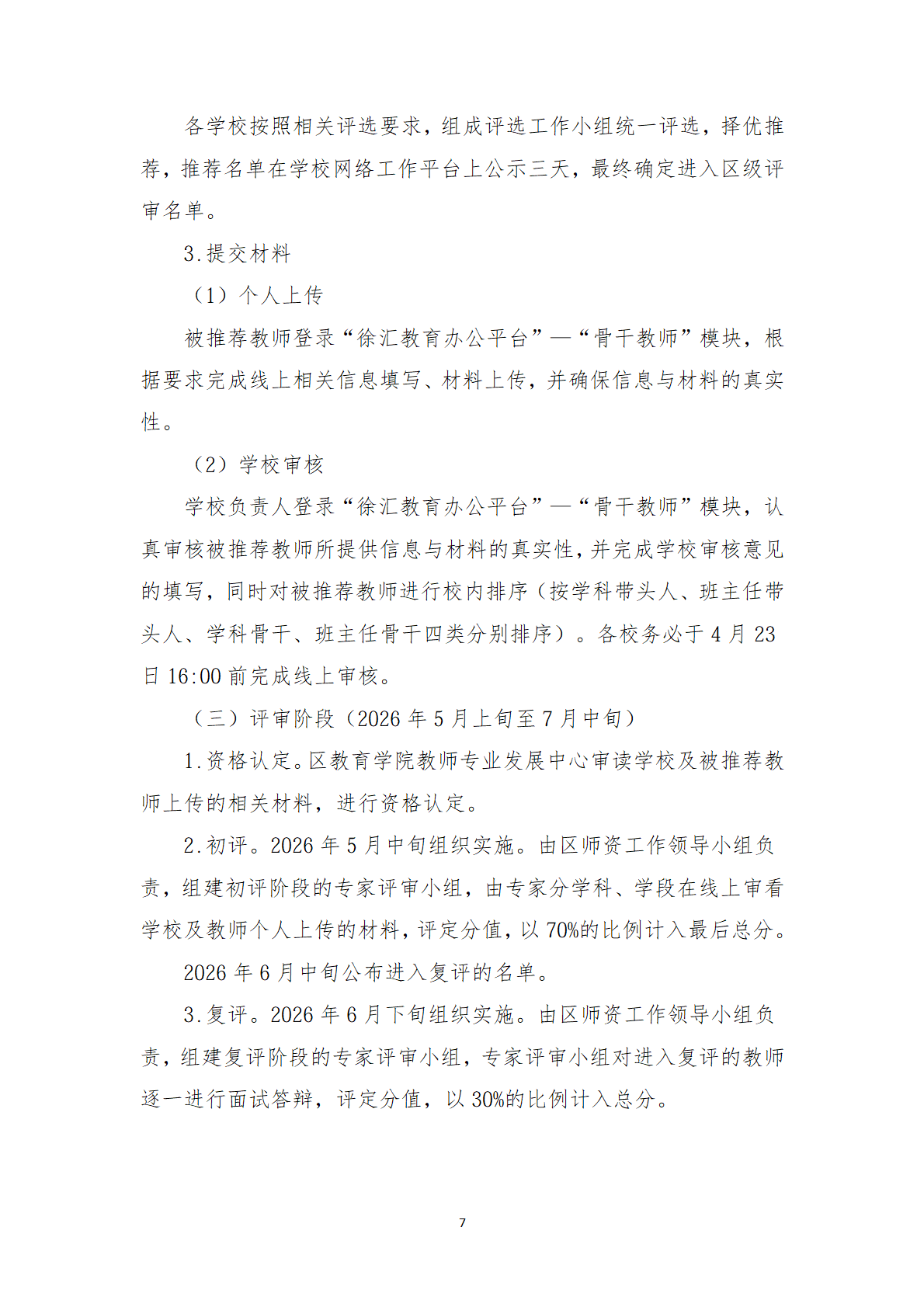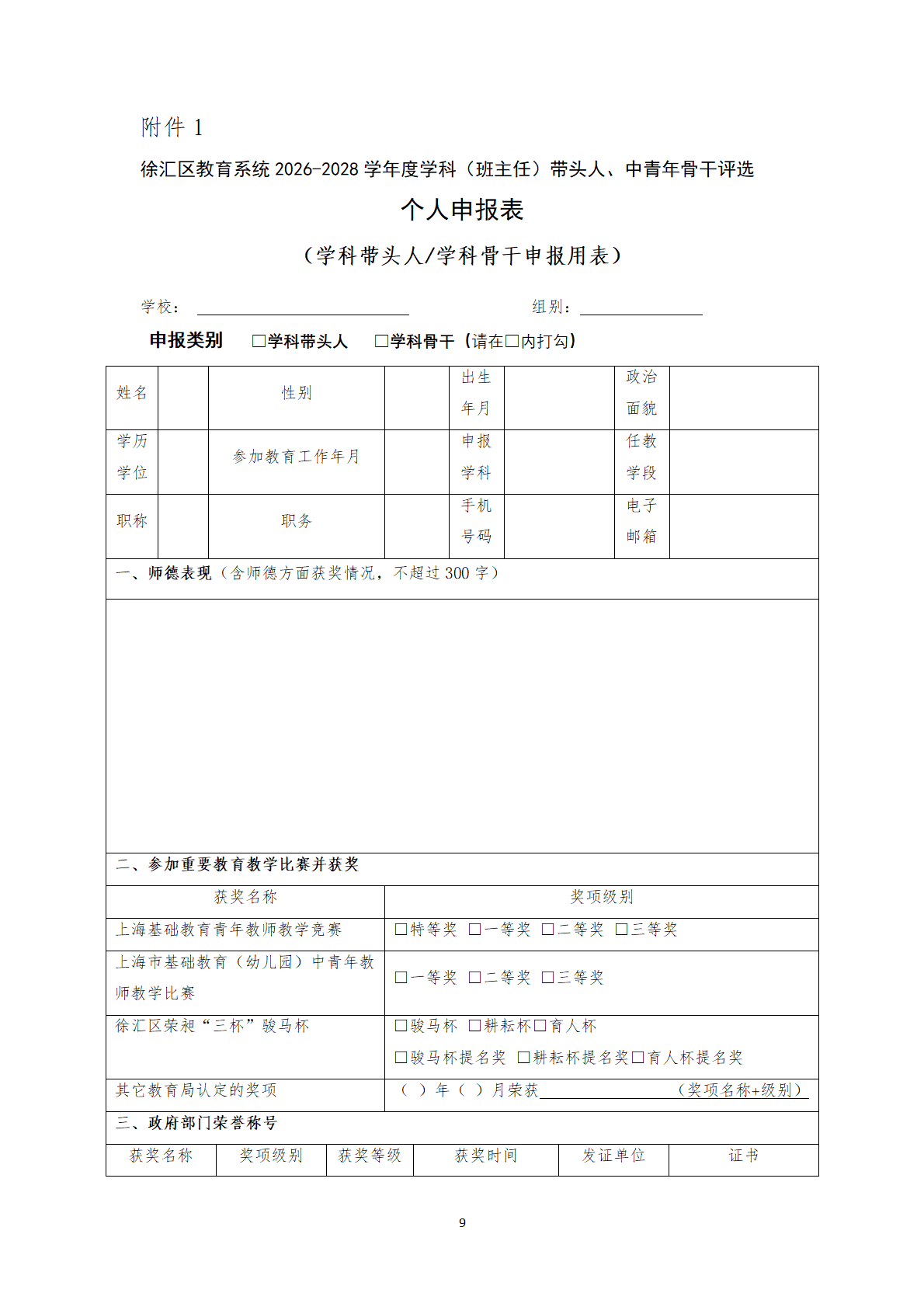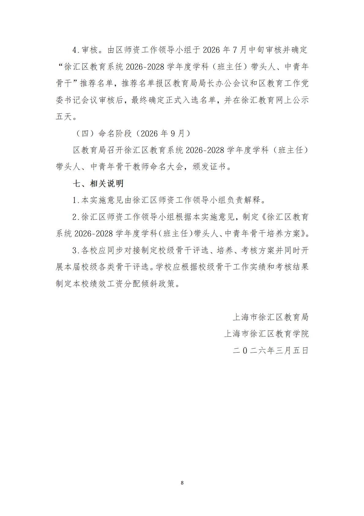 徐汇区教育系统2026-2028学年度 学科(班主任)带头人、中青年骨干评选办法 - 内容