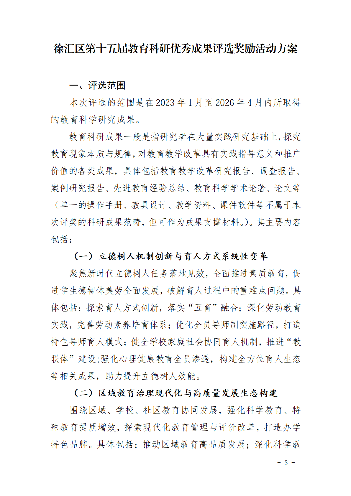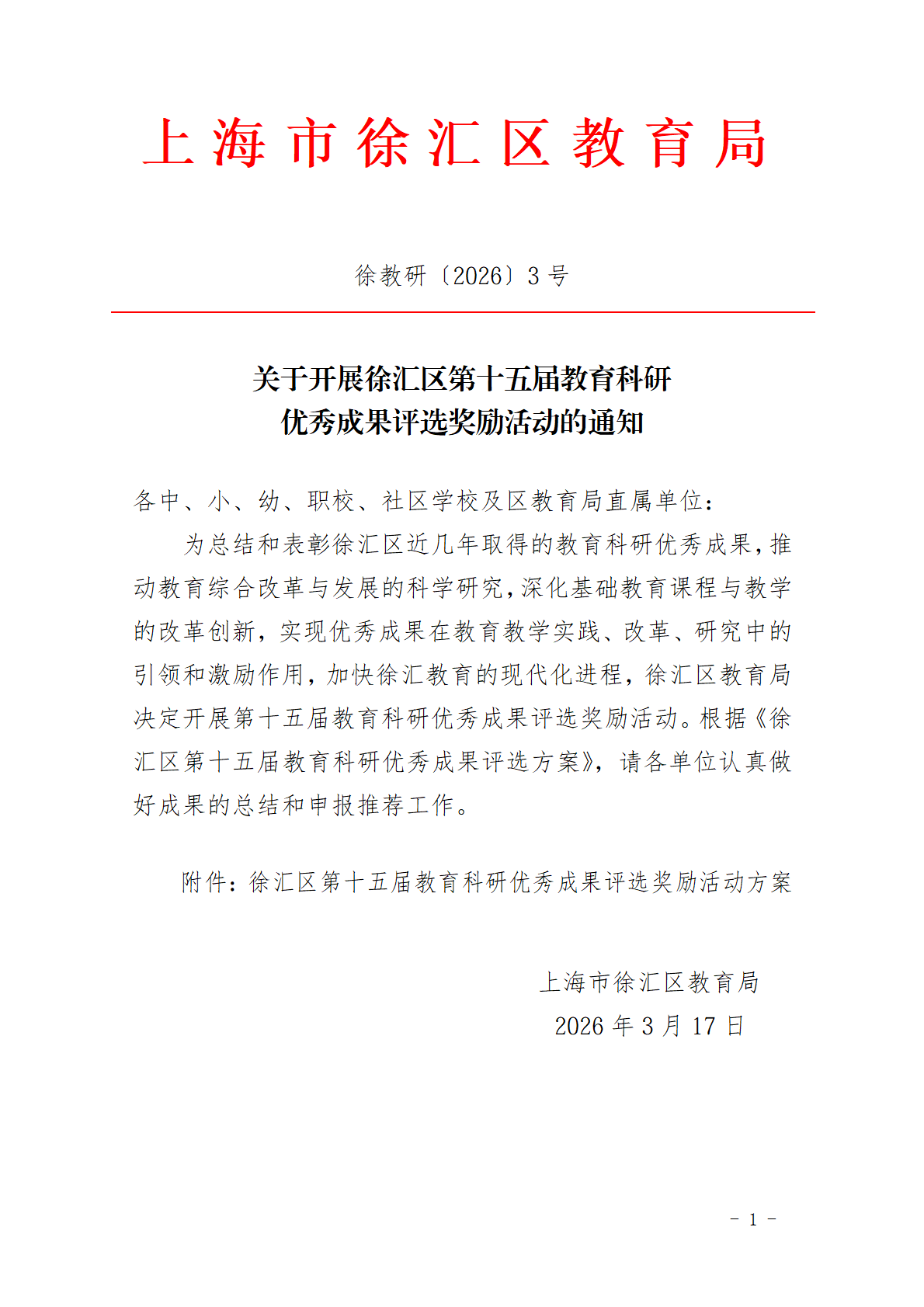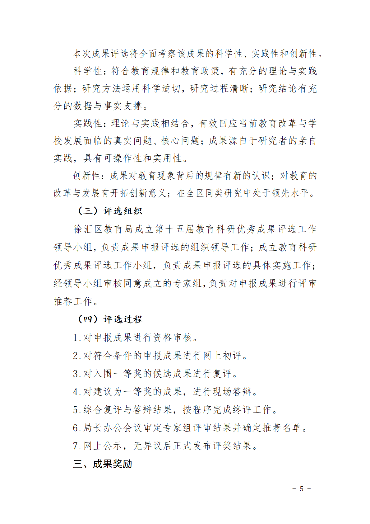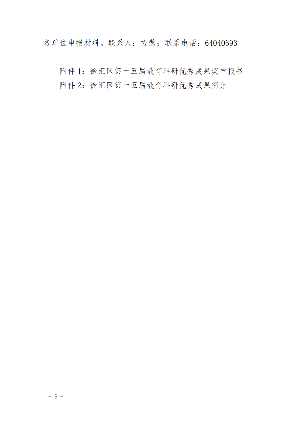 关于开展徐汇区第十五届教育科研 优秀成果评选奖励活动的通知 - 内容