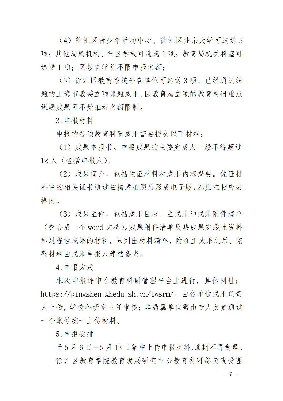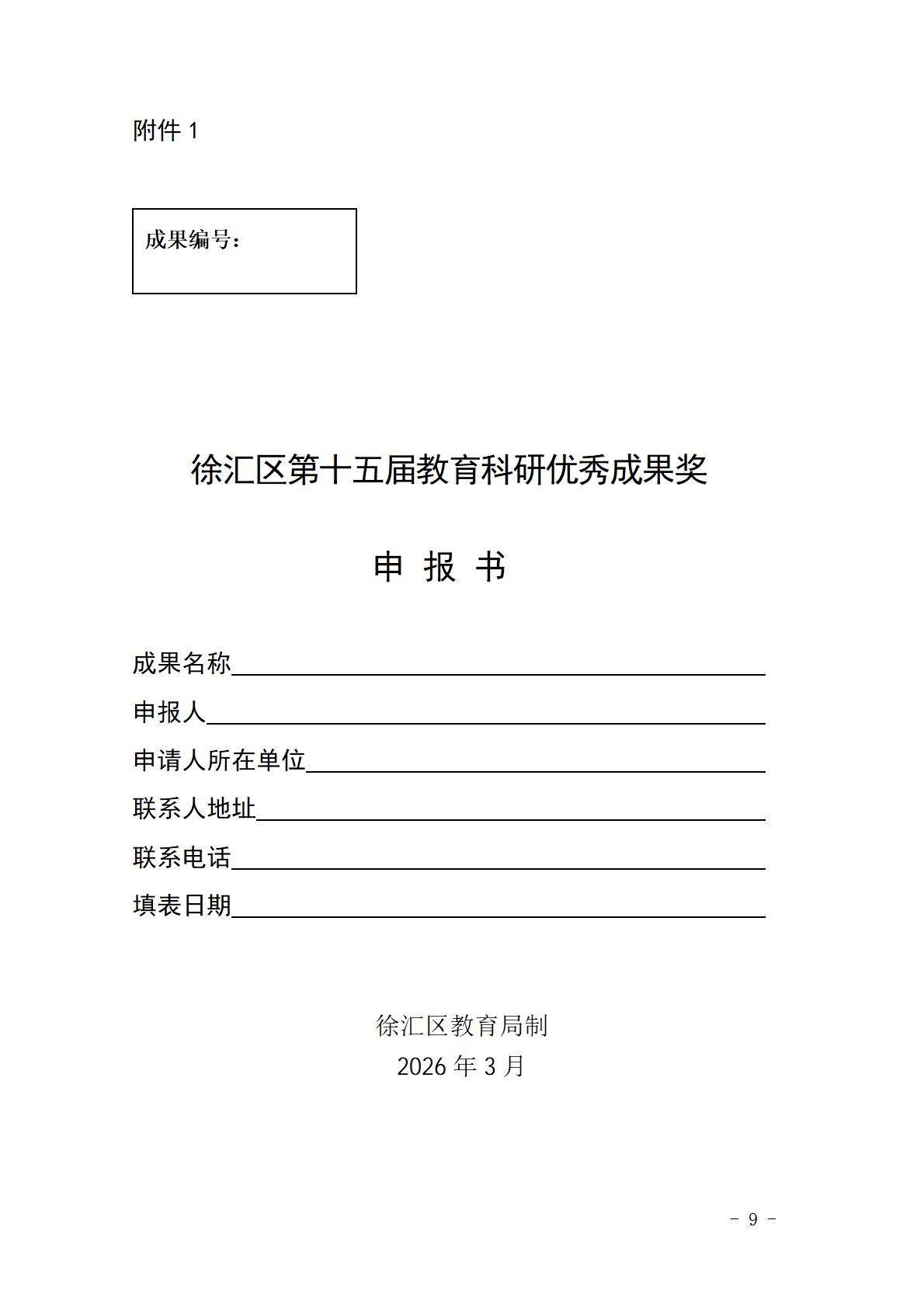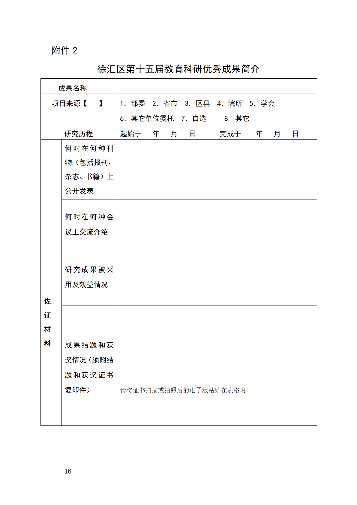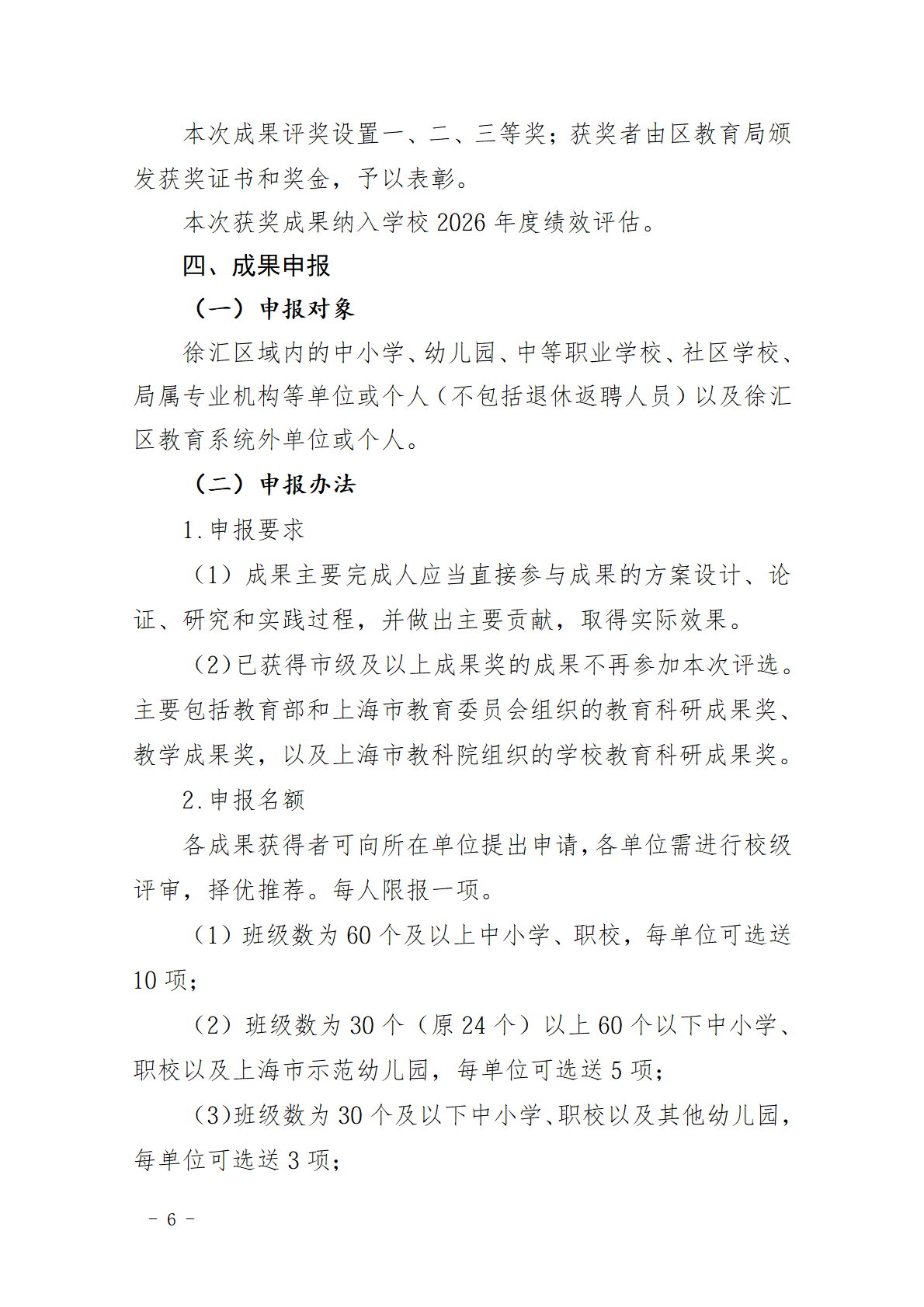 关于开展徐汇区第十五届教育科研 优秀成果评选奖励活动的通知 - 内容