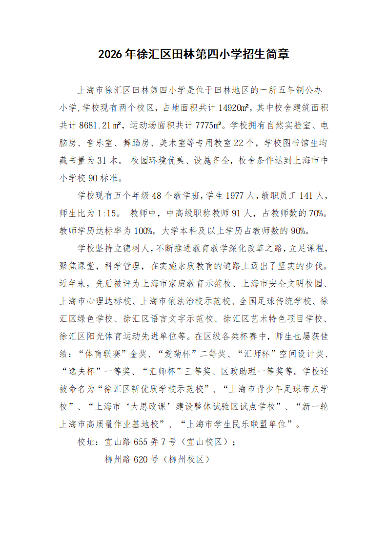 2026年徐汇区田林第四小学招生简章 - 内容